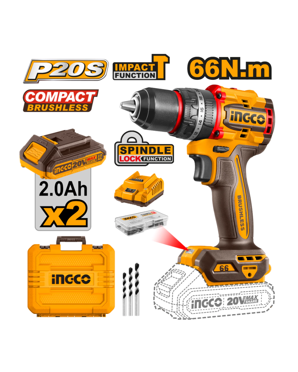 TALADO + 2 BATERIAS + CARGADOR + ACCESORIOS INGCO